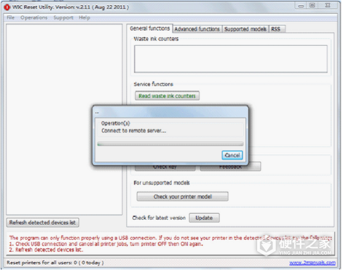 1、下载并安装软件,在程序中找到WIC下面的WICreset打开,如果是64位操作系统,会是英文显示,如果是32位操作系统,可以选择繁体中文显示,操作使用方法是完全一样的,请用户对照了操作即可。打开软件后会显示连接远程服务器,请等待大概几十秒钟。
